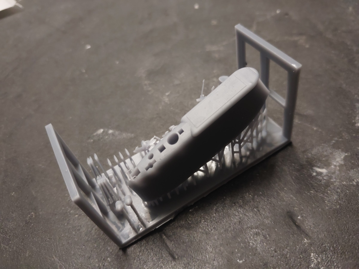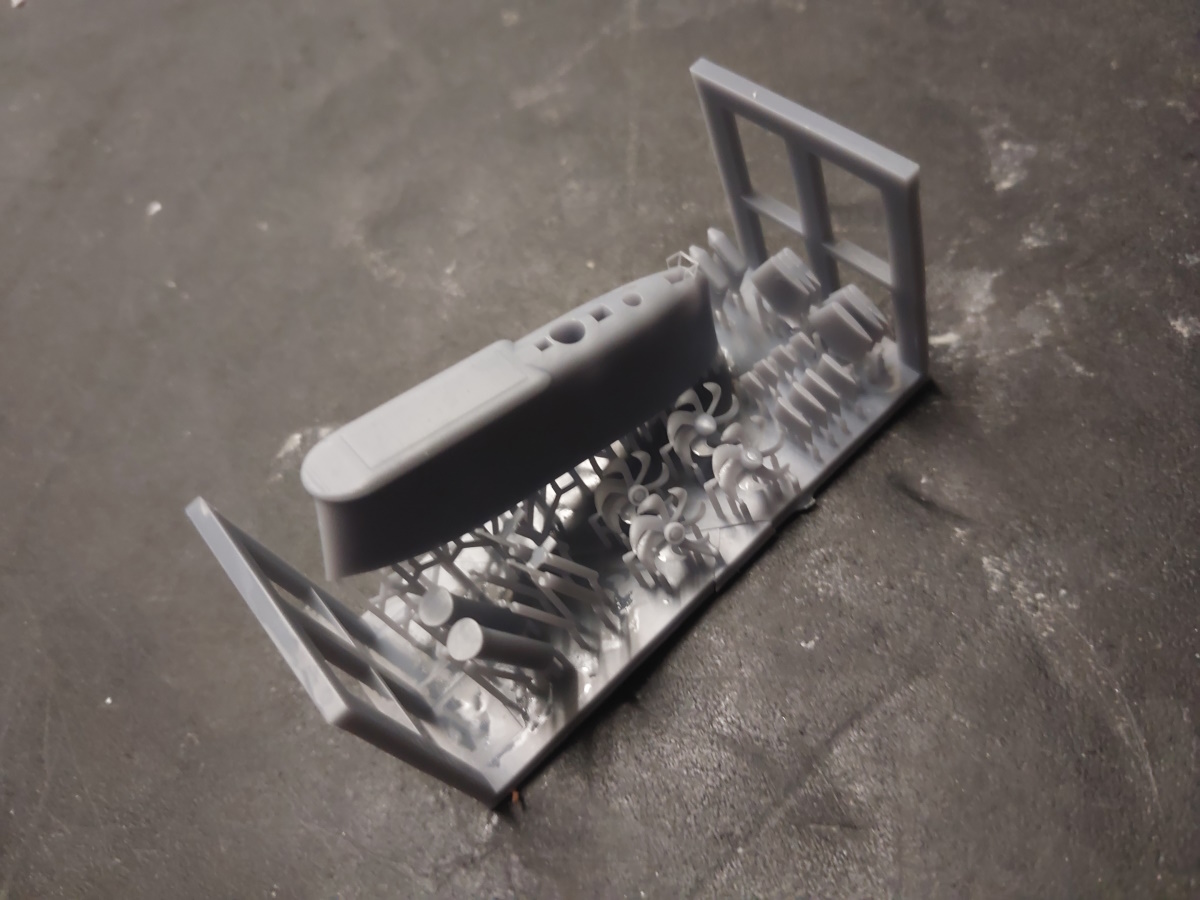 Resin cast hull, 3d printed parts